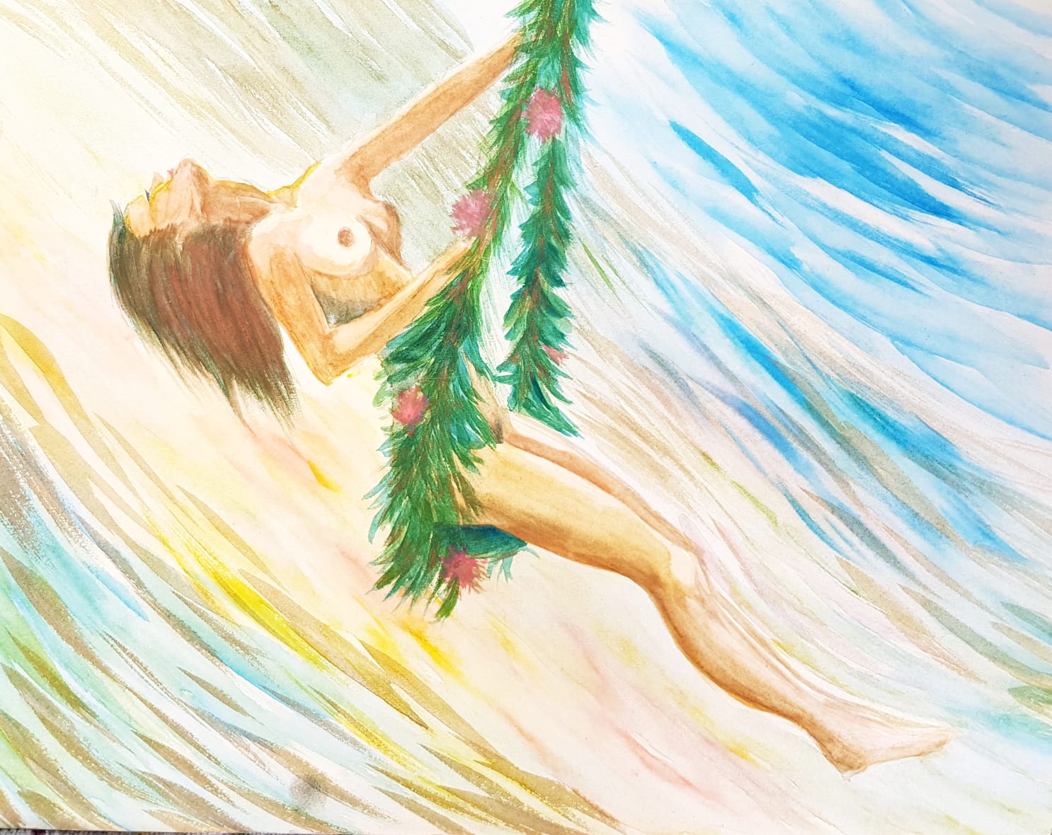 The watercolor technique, chosen by the artist, is perfect for conveying the sensation of lightness and